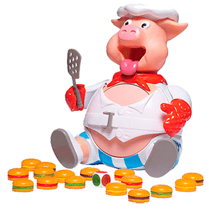 Lanza el dado, toma la hamburguesa del color que te toque y presiona su cabeza las veces que indique. Su barriga se hinchará, los brazos se abrirán… y si el cinturón revienta, ¡has perdido esa ronda! Risas, tensión y mucha diversión para toda la familia.