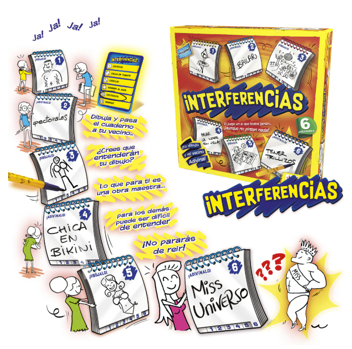 En Interferencias cada ronda es un “teléfono descompuesto” hecho con lápiz: escribes, dibujas, adivinas… y al final te partes de risa con las transformaciones imposibles entre el inicio y el final.